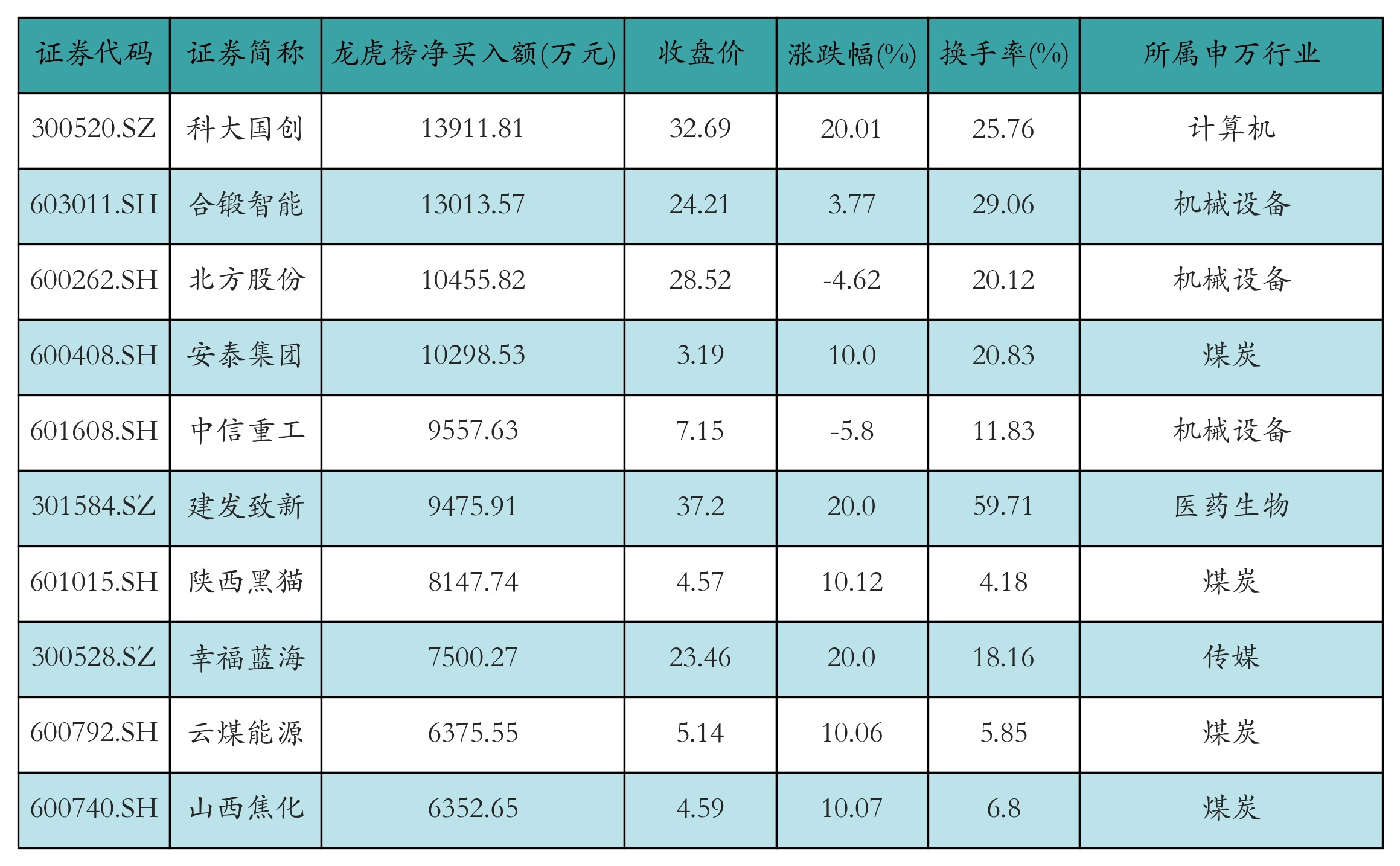 昨日龙虎榜营业部净买入额前10详情见下表: