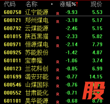 下跌方面,煤炭板块调整,辽宁能源跌停。