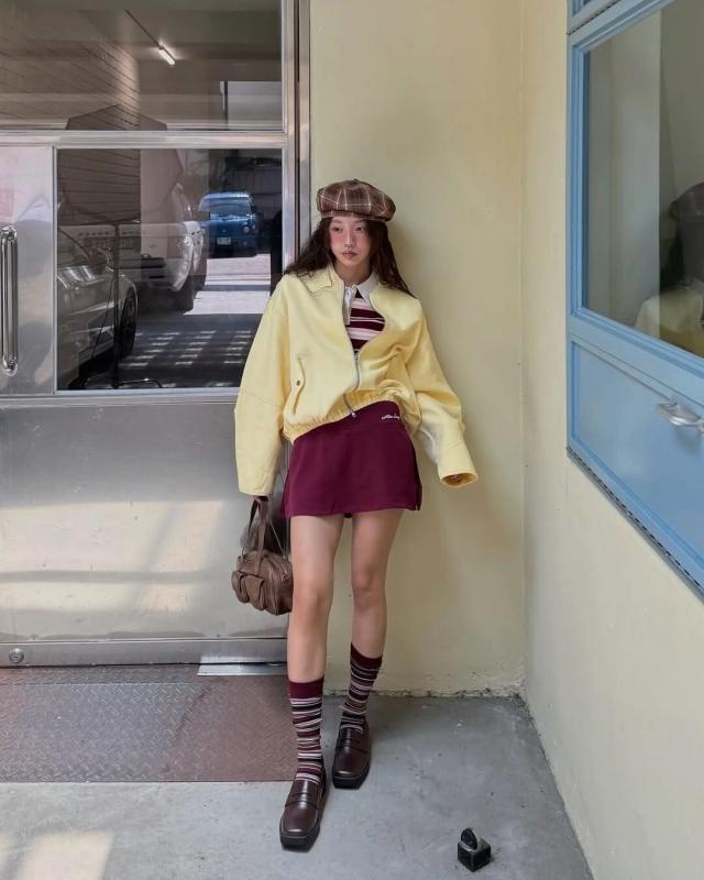 韩国博主 mulbada 演绎的早秋穿搭也很有巧思,通过色彩搭配和叠穿,摇身一变,成了时髦有气质的学姐,既复古又少女。
