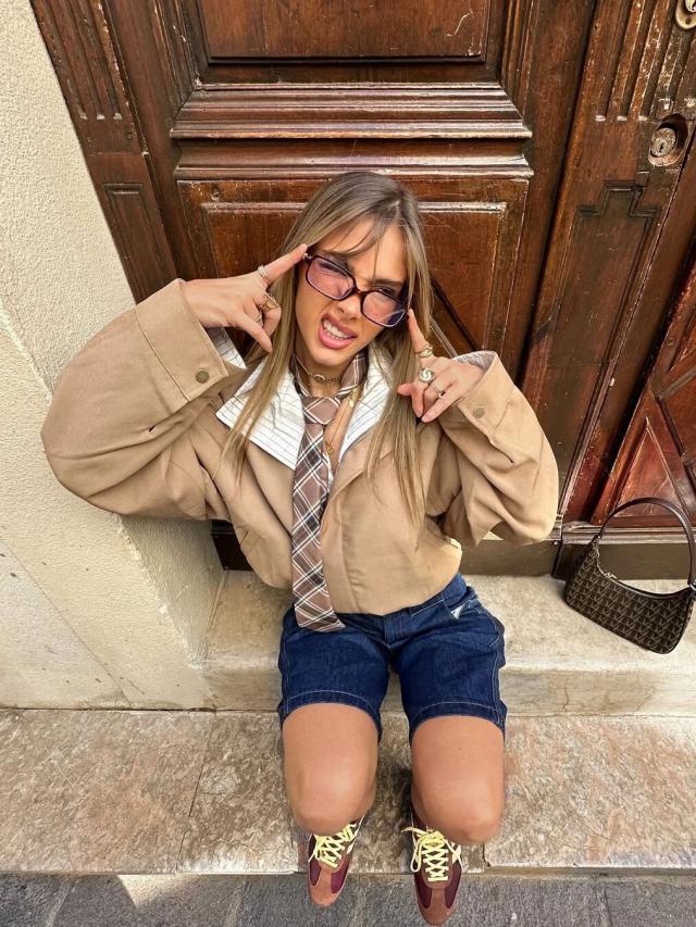 很多百万时尚博主也自发带货,比如博主 SOFIA COELHO 和她的闺蜜搭子 Ines Silva 演绎的非正式学院风,就巧妙融合了 Y2K 元素与复古美式学院风。打造出独具辨识度的" Y2K 混搭复古美高风"。