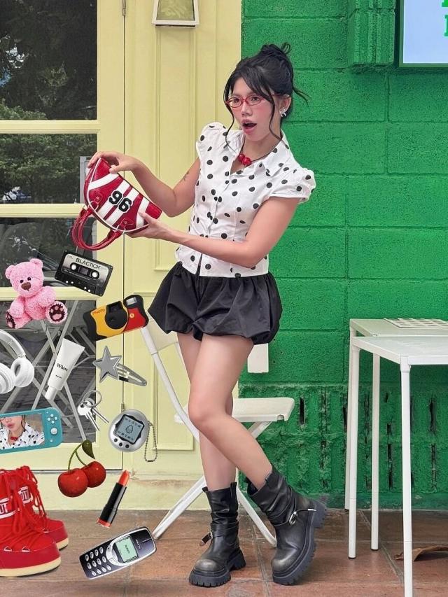 "人间甜豆"张元英同样钟情于 CIDER,无论是蝴蝶结元素还是粉嫩色系,都与她甜美灵动的气质相得益彰,轻松穿出女团同款精致感。